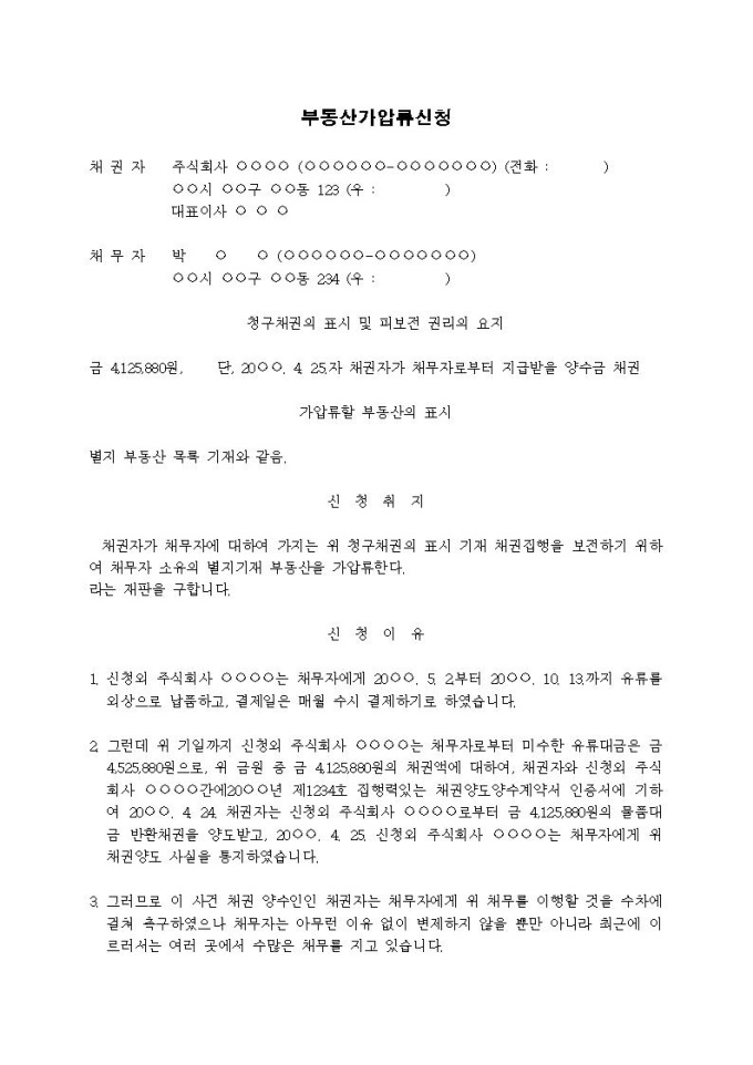 9,000원/월부동산가압류신청서(양수금)입니다.