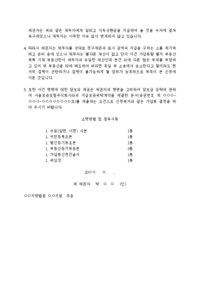 9,000원/월부동산가압류신청서(이득상환금(수표의 지급제시기간을 넘긴 경우))입니다.