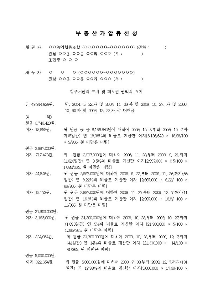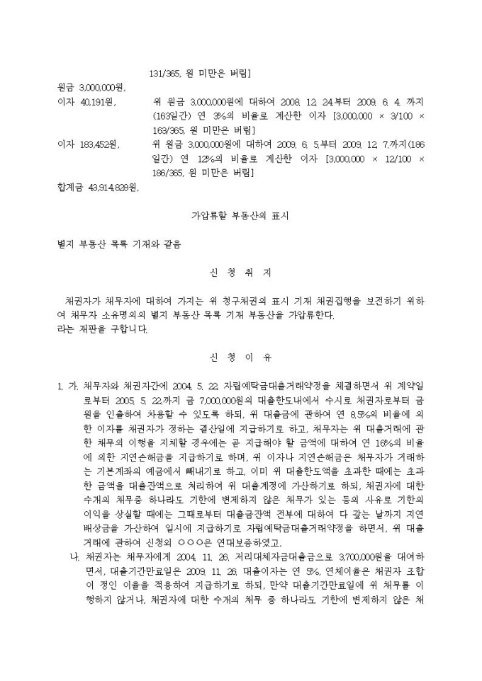 부동산가압류신청서(자립예탁금, 일반대출금)