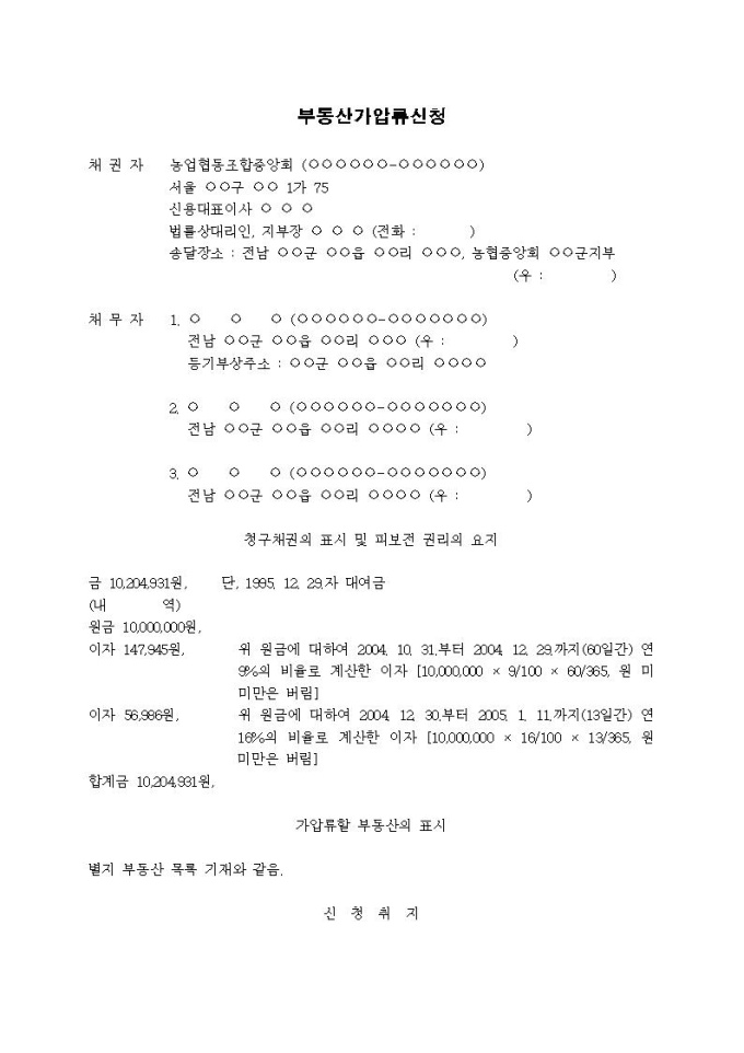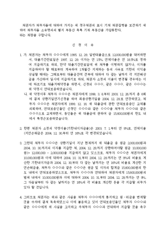 9,000원/월부동산가압류신청서(특정근보증)입니다.