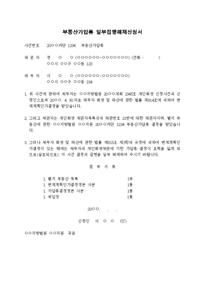 9,000원/월부동산가압류집행해제신청서(개인회생신청인)(2)입니다.