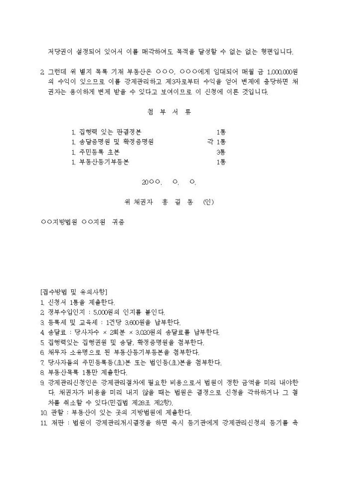 9,000원/월부동산강제관리신청서입니다.