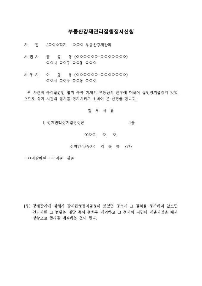 9,000원/월부동산강제관리집행정지신청서입니다.