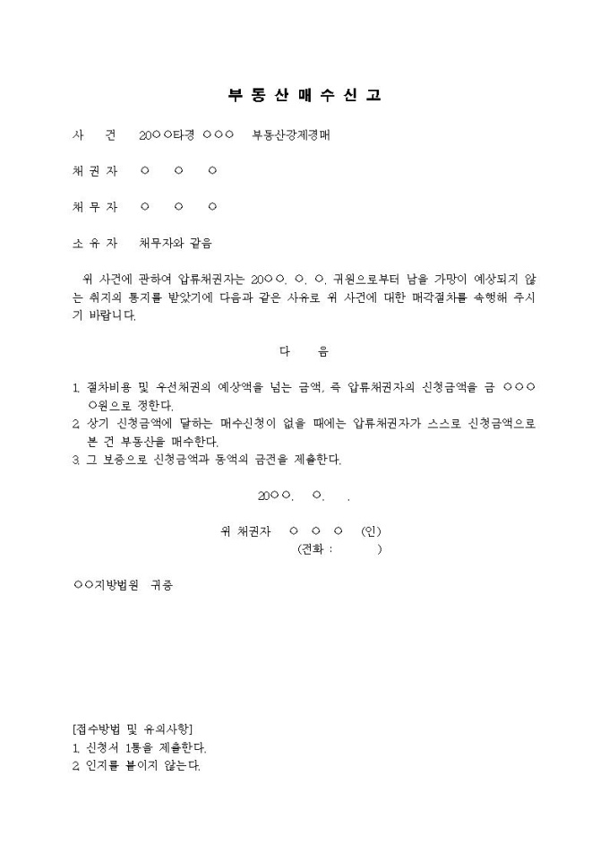 부동산매수신고서(경매신청채권자가 매수)