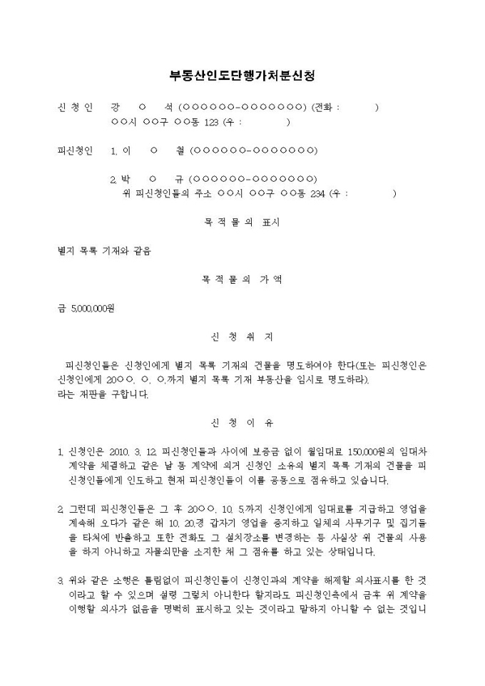 부동산인도단행 가처분신청서