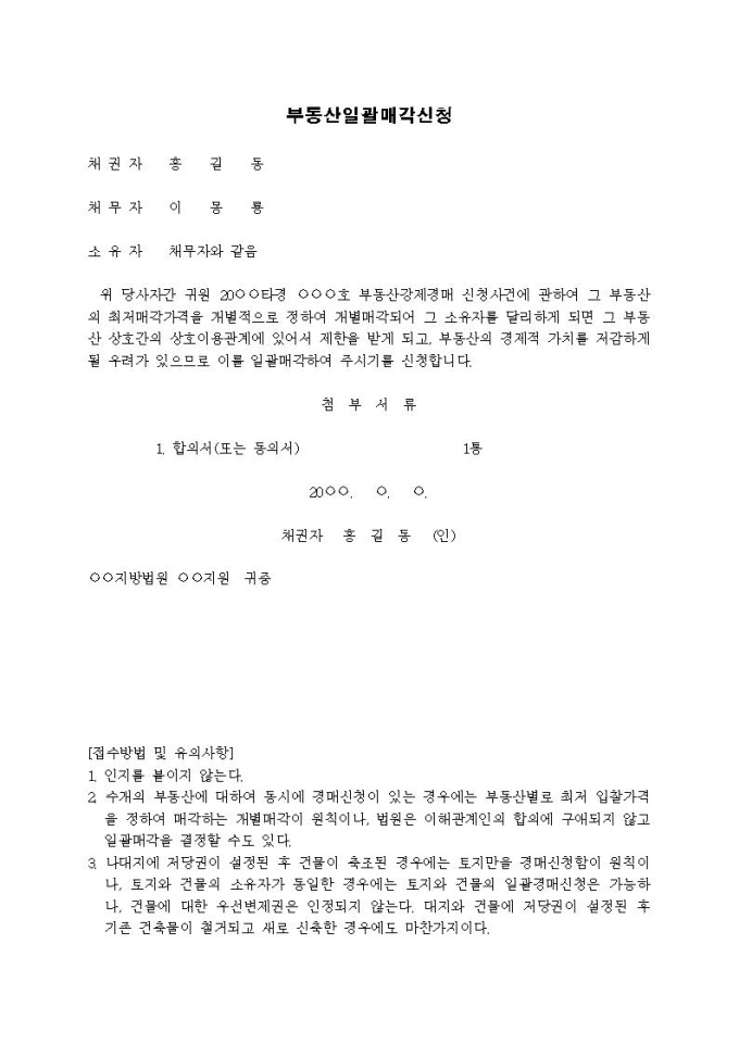 9,000원/월부동산일괄매각신청서입니다.