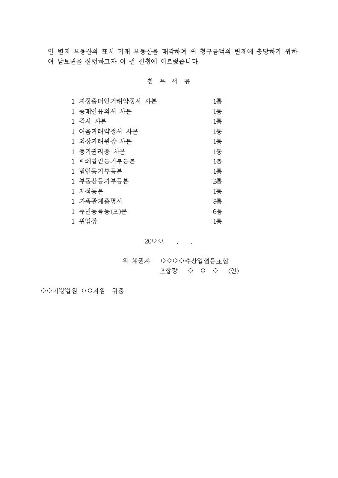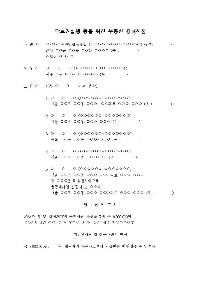 부동산임의경매신청서(채무자사망, 채권자계약이전)