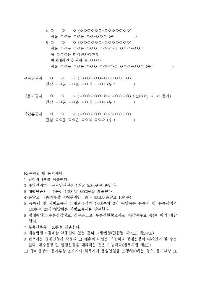부동산임의경매신청서(채무자사망, 채권자계약이전)입니다.