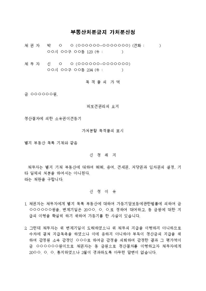 9,000원/월부동산처분금지 가처분신청서(가등기담보권자)입니다.
