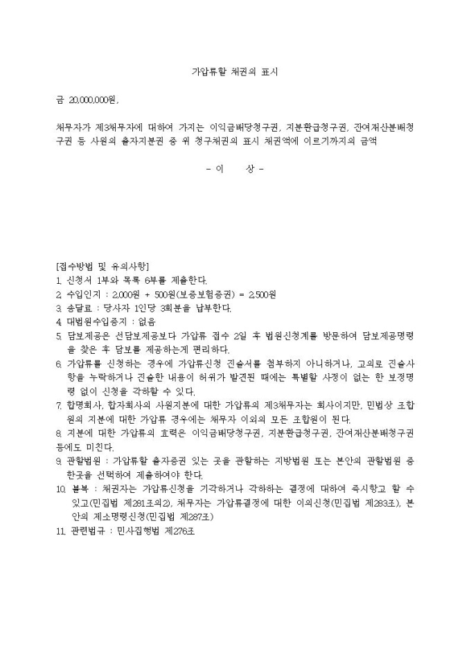 사원의 지분 등에 대한 채권가압류신청서