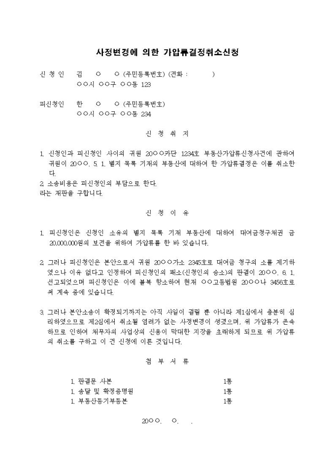 9,000원/월사정변경에 의한 가압류결정취소신청서입니다.