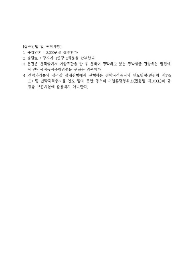 선박국적증서수취명령신청서(가압류집행을 위한)입니다.