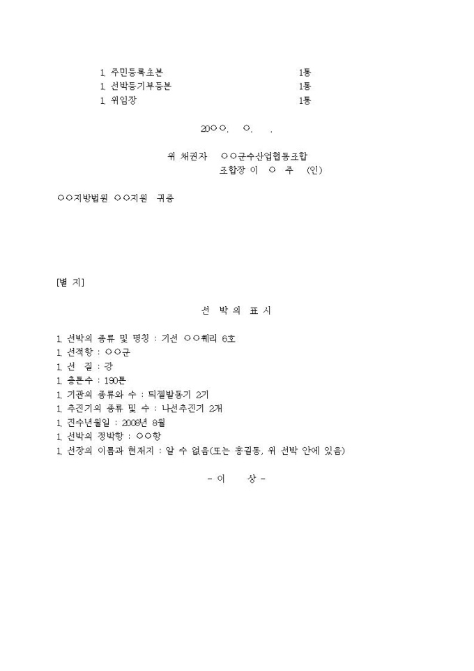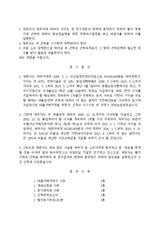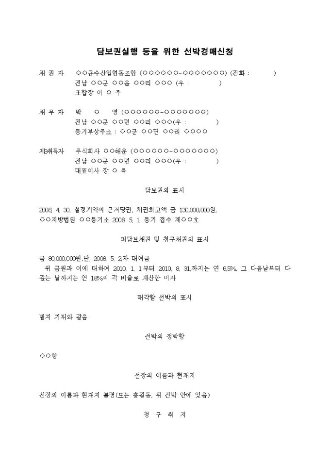 선박임의경매신청서입니다.
