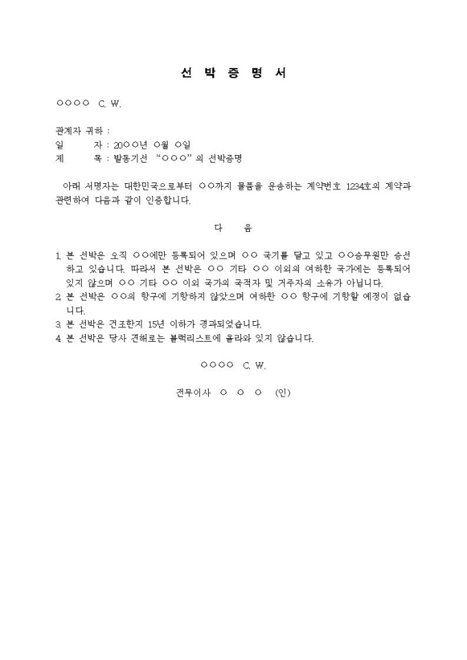 9,000원/월선박증명서(외국선박)입니다.