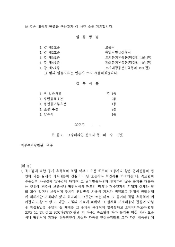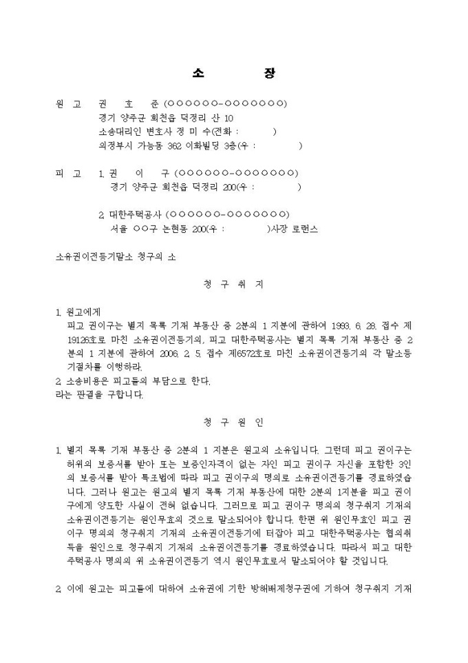 9,000원/월소유권이전등기말소청구 소장(특조법등기, 물권적 청구권)입니다.
