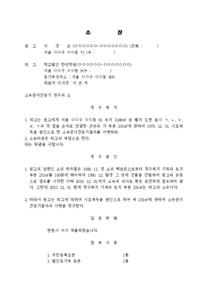 9,000원/월소유권이전등기청구 소장(시효취득을 원인)(2)입니다.