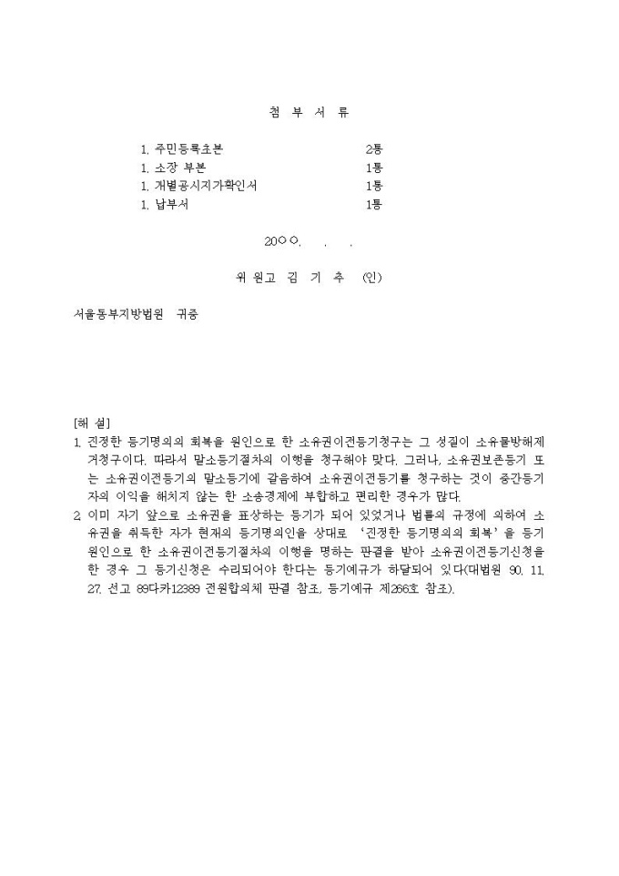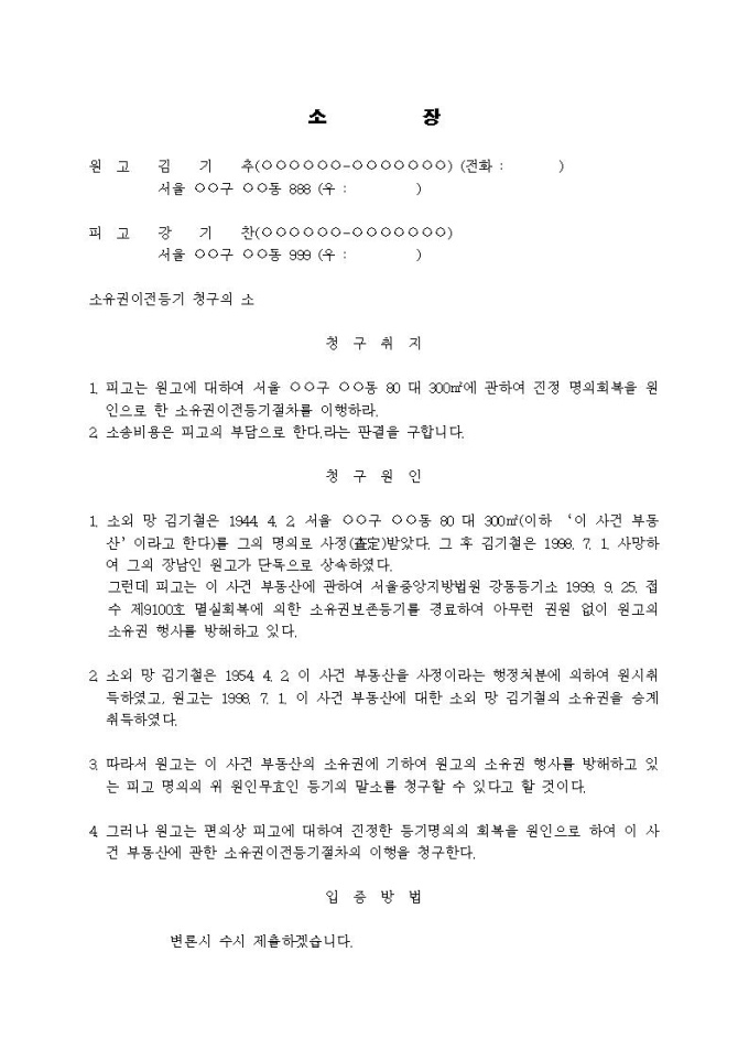 9,000원/월소유권이전등기청구 소장(진정명의회복을 원인)입니다.