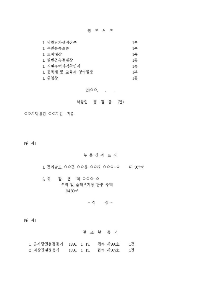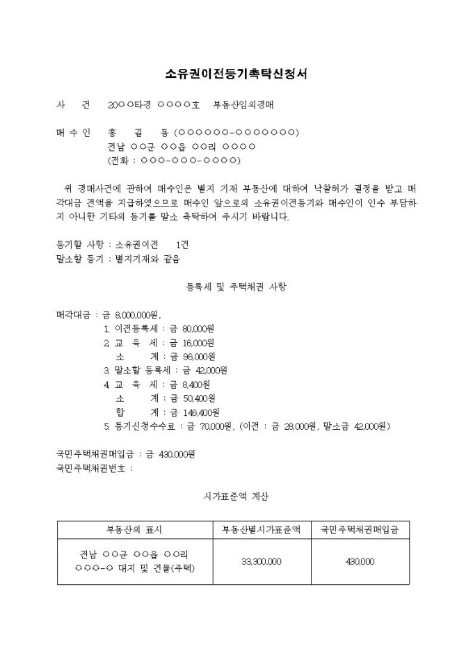 9,000원/월소유권이전등기촉탁신청서입니다.