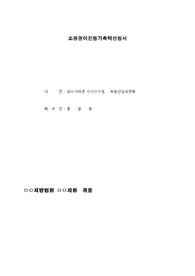 소유권이전등기촉탁신청서 표지
