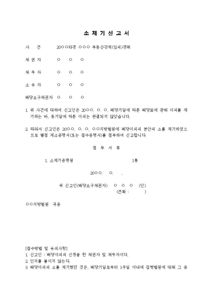 소제기신고서(배당이의의 소)