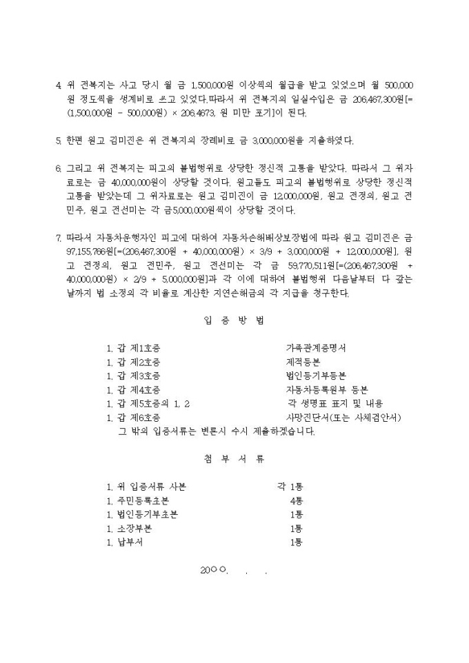 손해배상청구 소장(자배법책임)