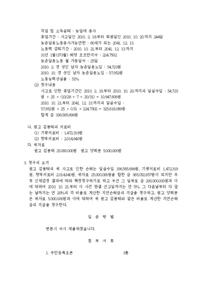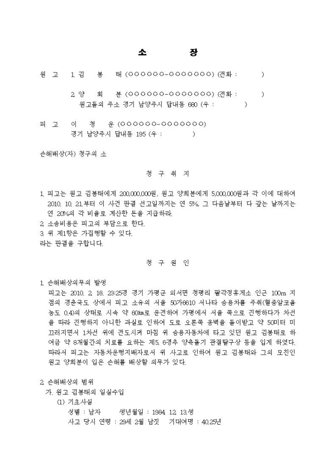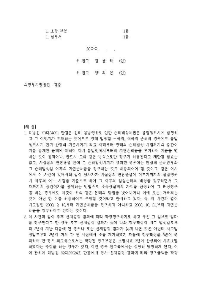 9,000원/월손해배상청구 소장(자배법책임, 현가산정의 기준시기, 일부청구)입니다.