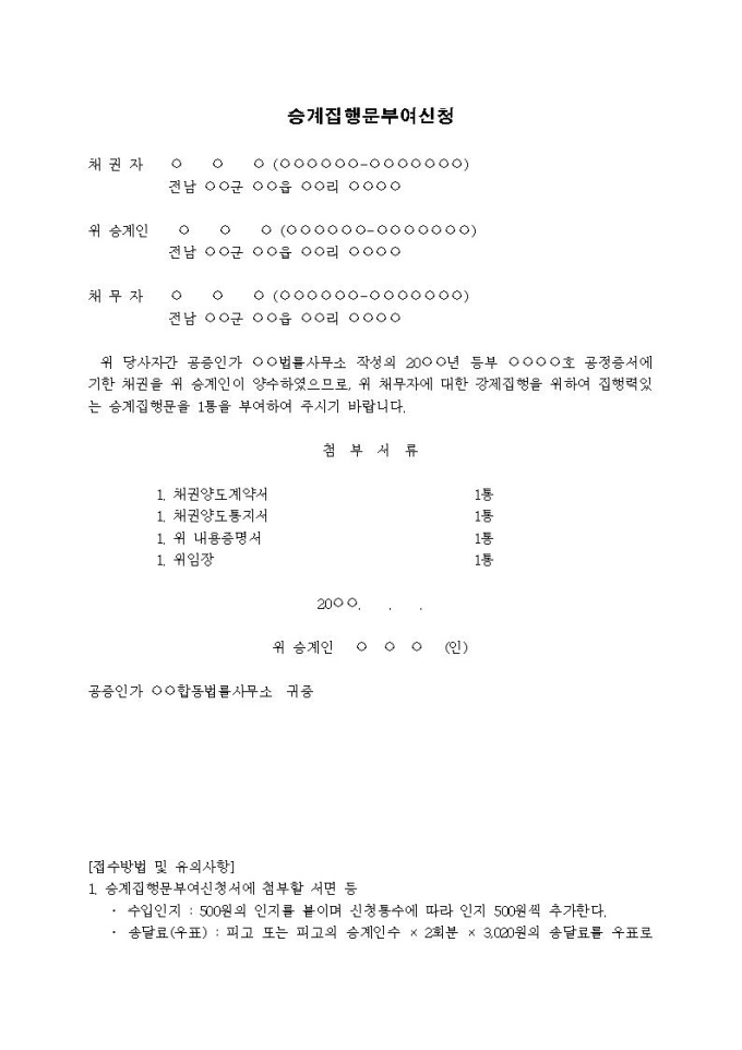 승계집행문부여신청(공정증서)