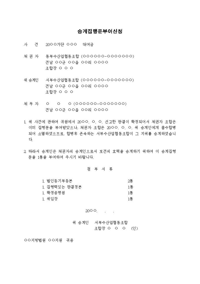 승계집행문부여신청(흡수합병)입니다.