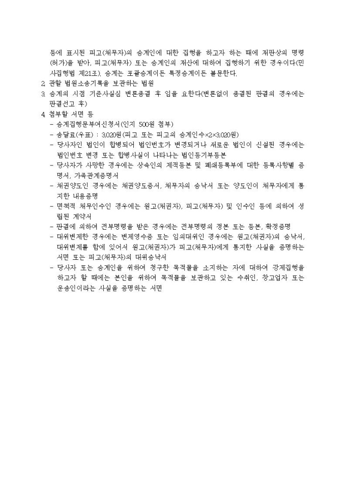 9,000원/월승계집행문부여신청서(채무자승계 채무자의 상속인에 대하여)입니다.
