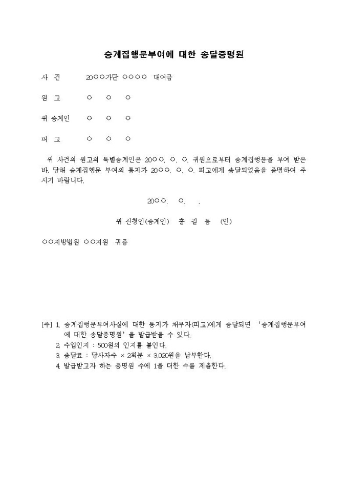 승계집행문부여에 대한 송달증명원