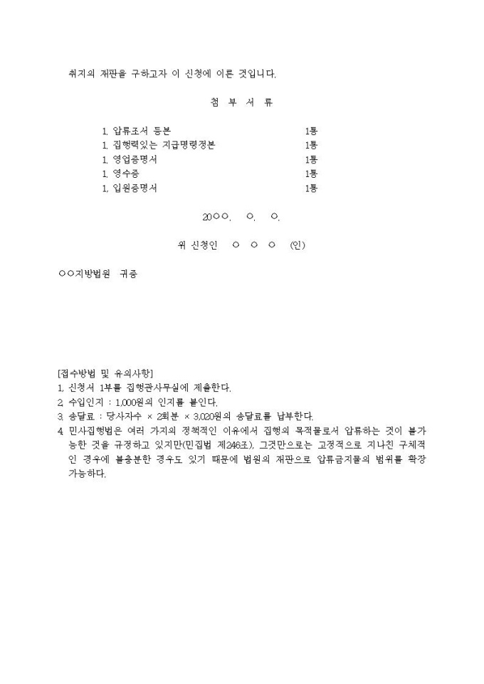 압류금지물범위변경신청서