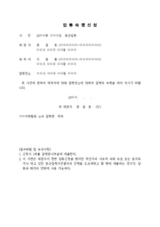 9,000원/월압류속행신청서입니다.