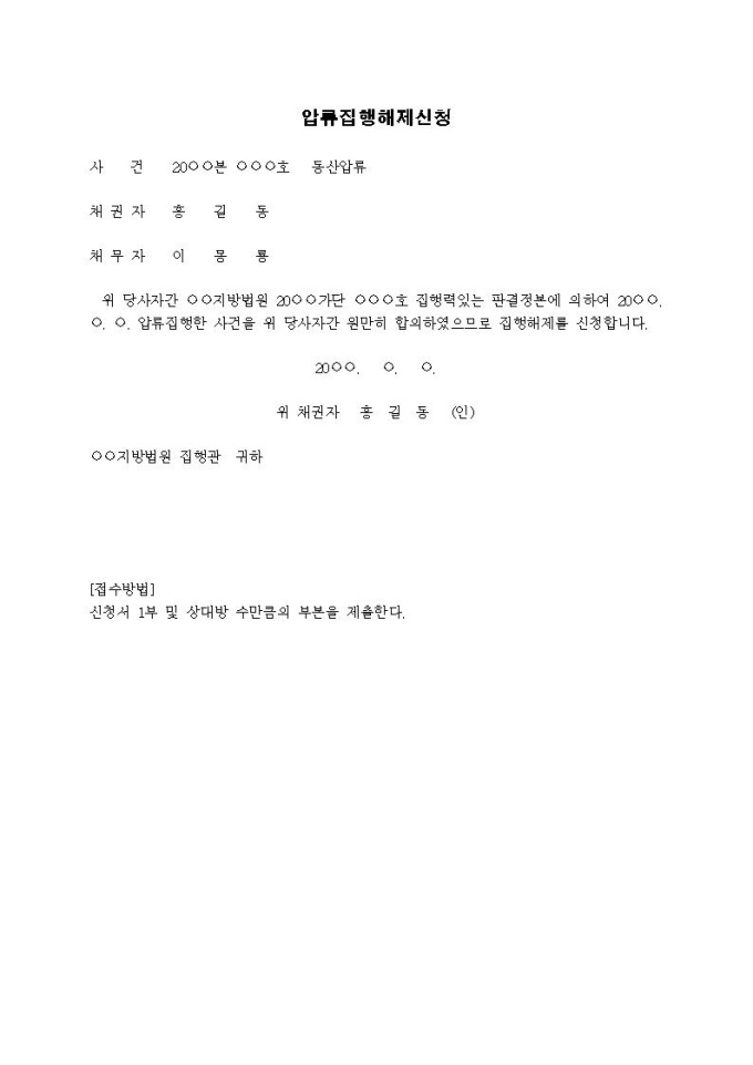 압류집행해제신청서(동산)