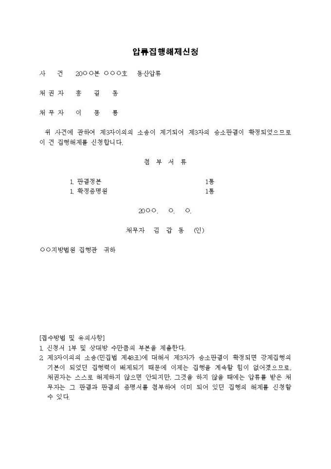 9,000원/월압류집행해제신청서(동산)(2)입니다.