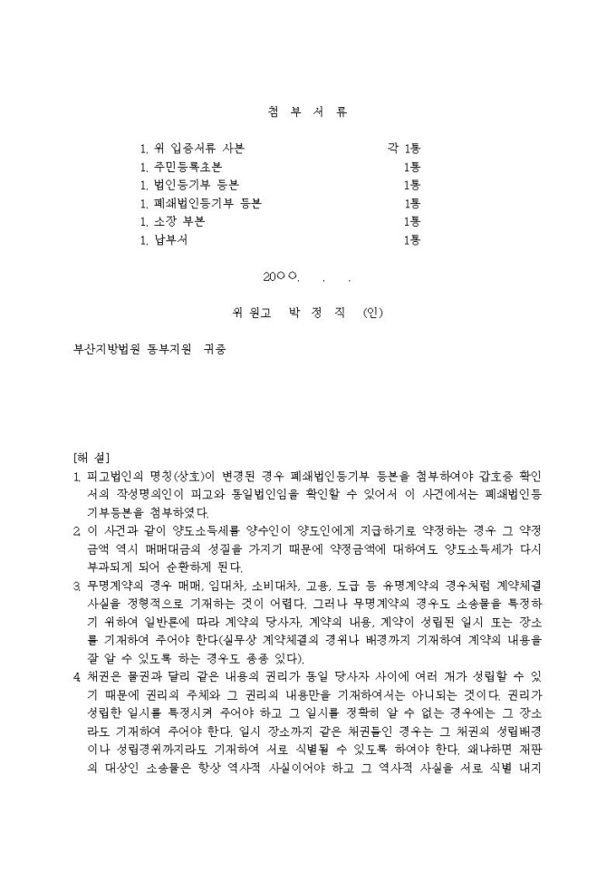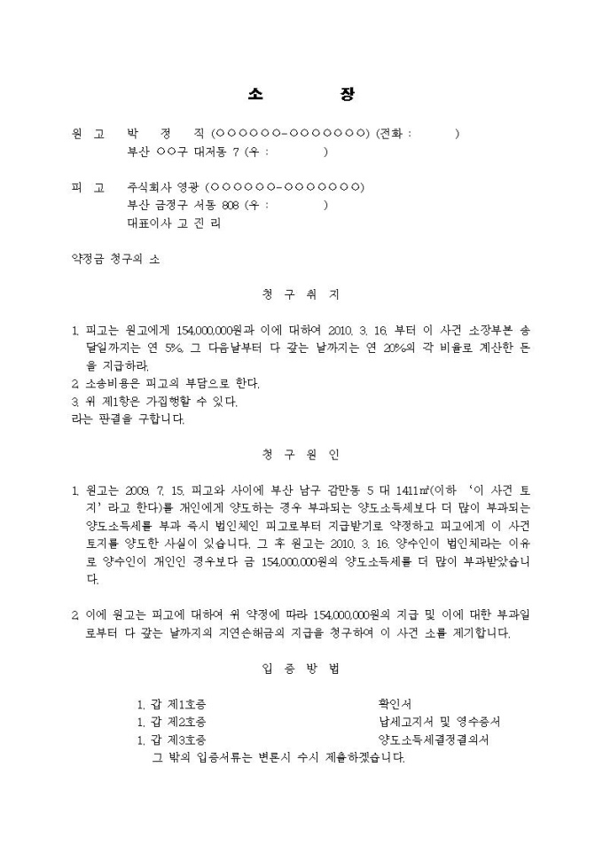 9,000원/월약정금청구 소장(양도소득세 전가약정)입니다.