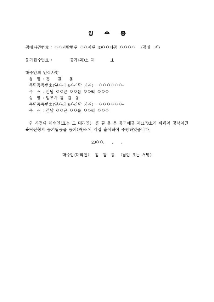 9,000원/월영수증(등기필증수령용)입니다.