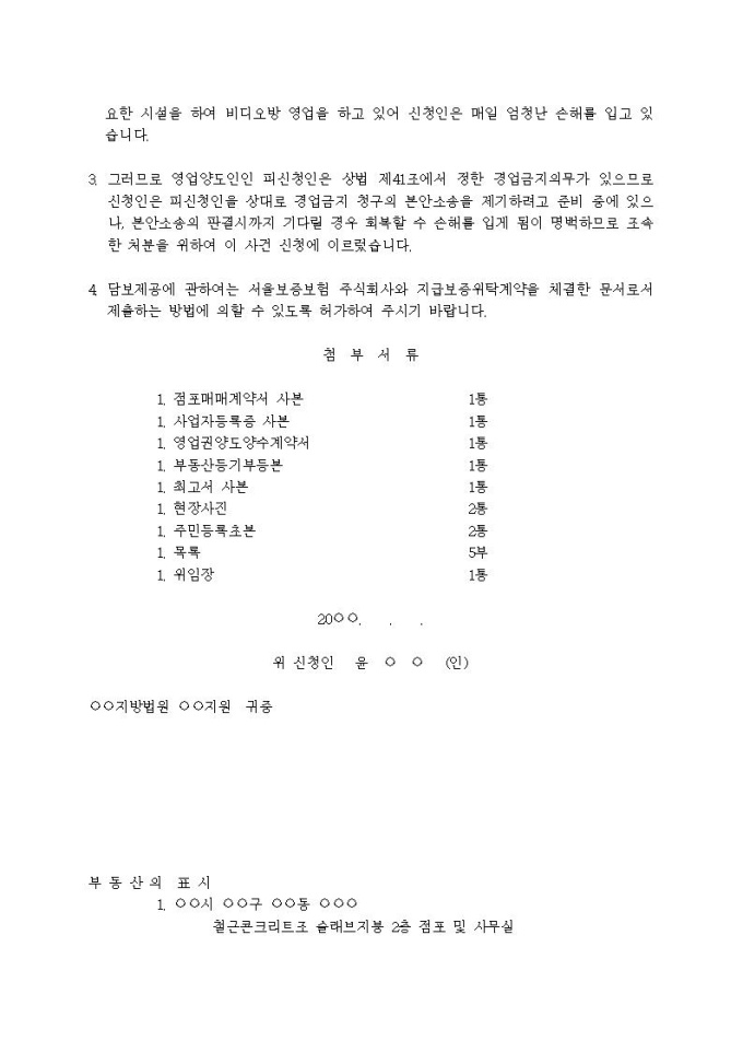 9,000원/월영업금지 가처분신청서(경업금지의무에 위반한 경우)입니다.