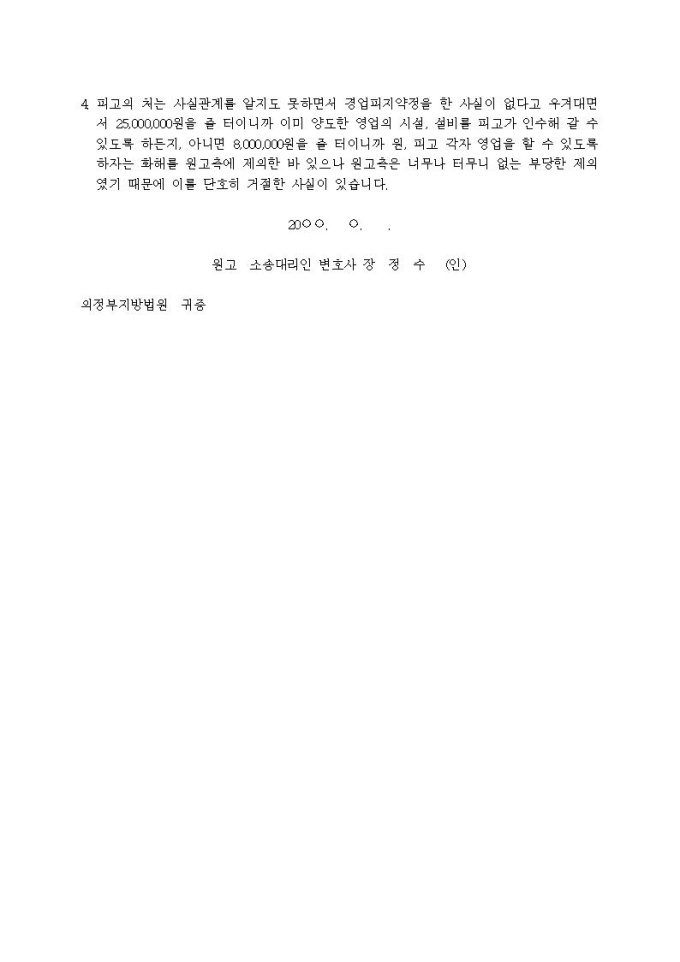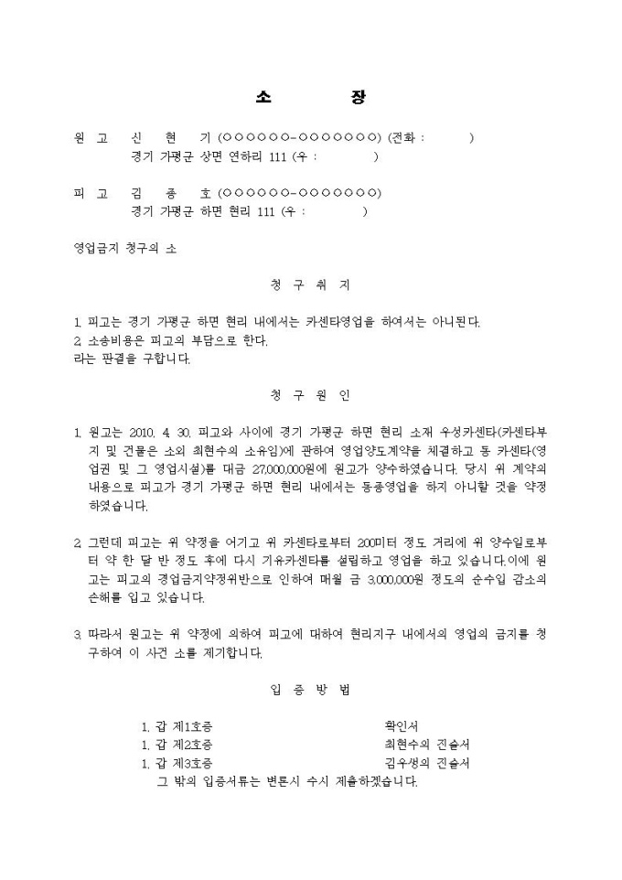영업금지청구 소장(경업금지)