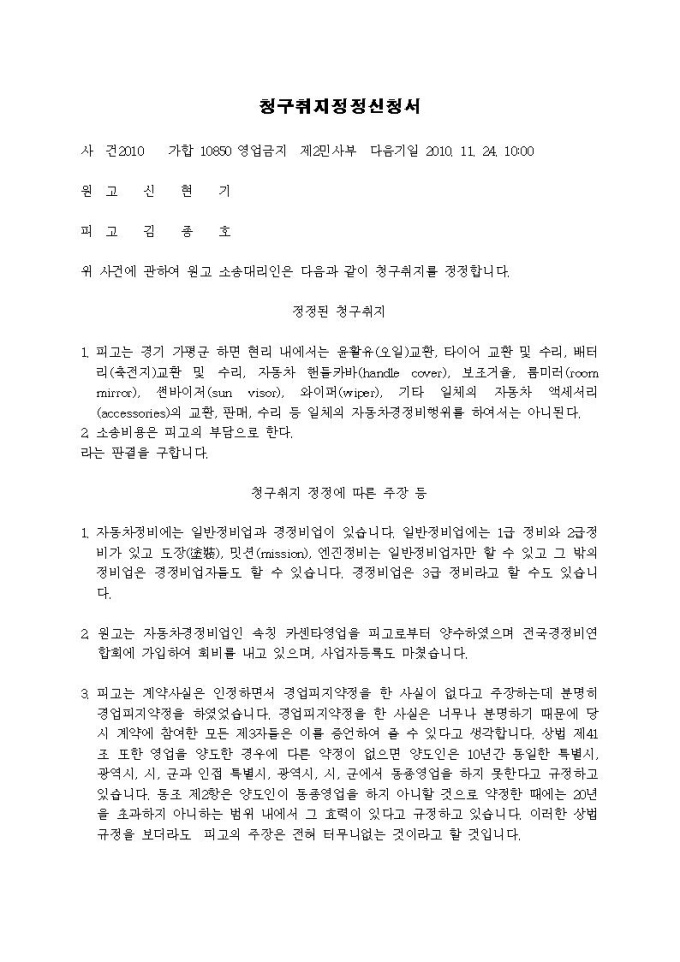 영업금지청구 소장(경업금지)입니다.