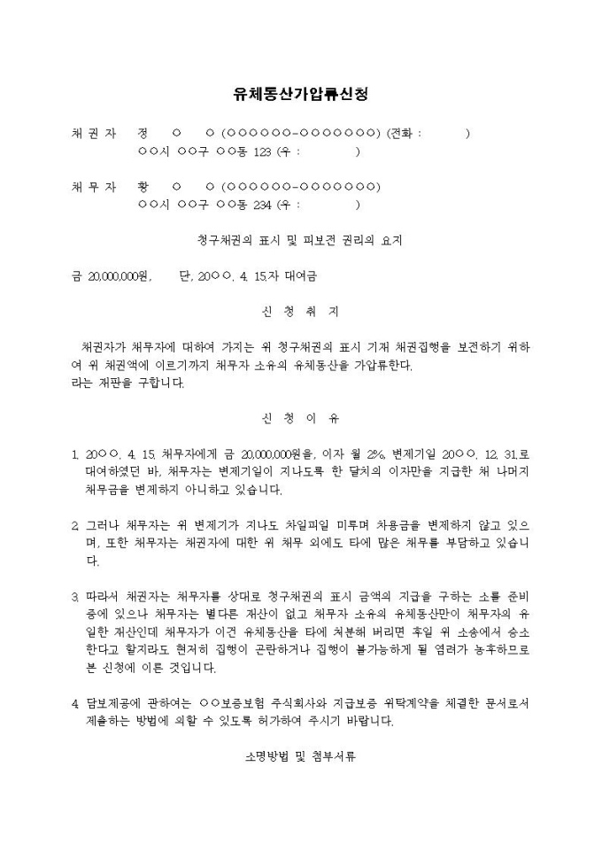 유체동산가압류신청서(대여금)입니다.