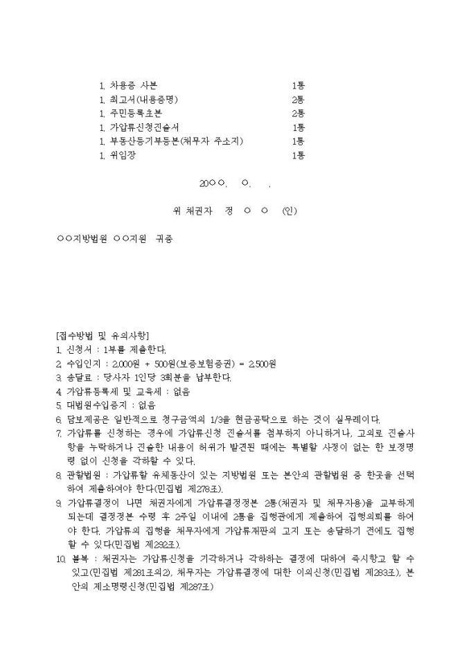 유체동산가압류신청서(대여금)