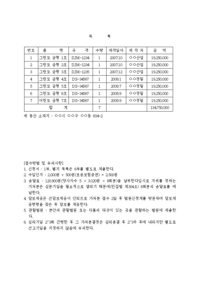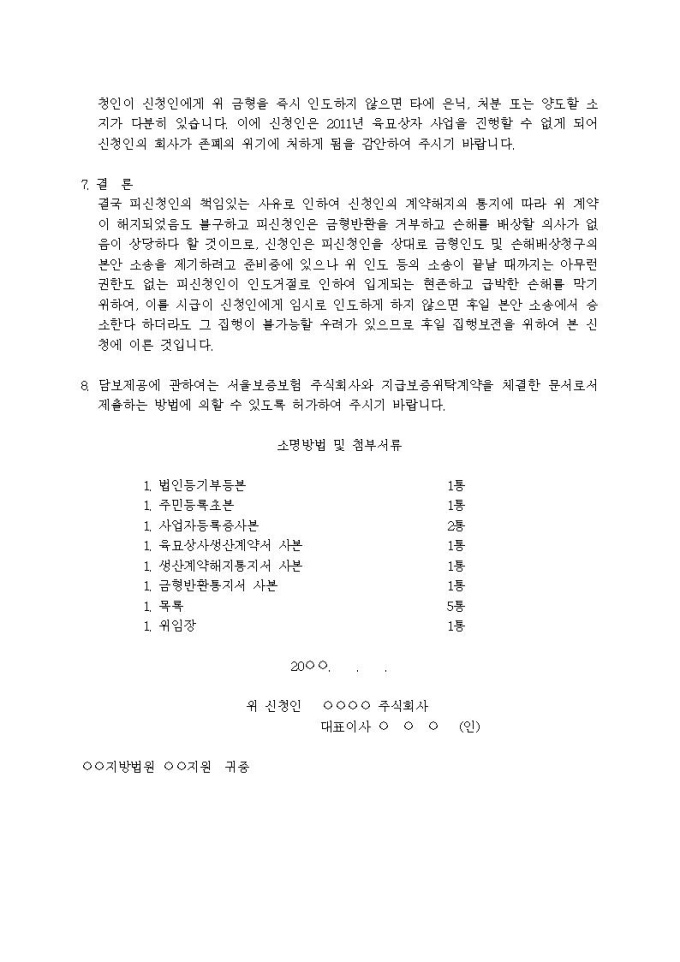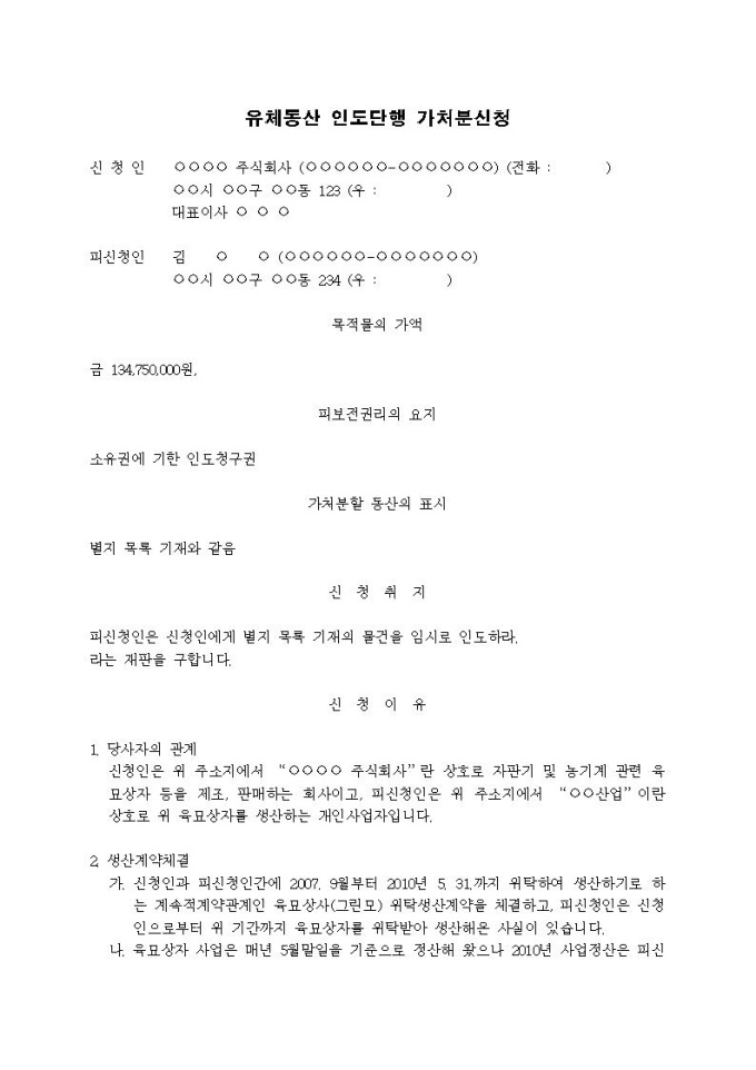 유체동산인도단행 가처분신청서입니다.