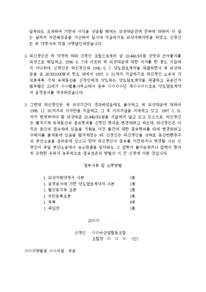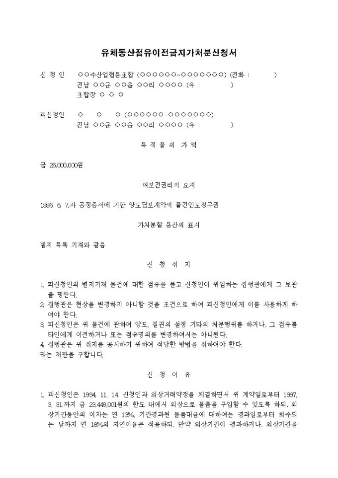 9,000원/월유체동산점유이전금지 가처분신청서(사해행위취소)입니다.
