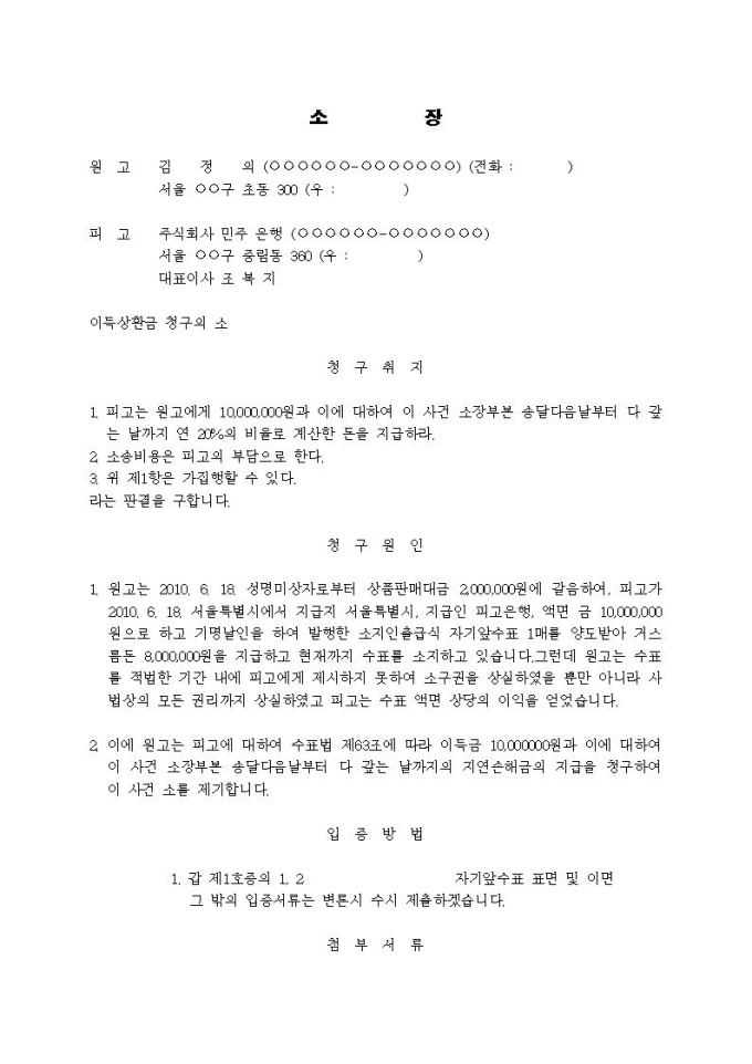 9,000원/월이득상환금청구 소장입니다.