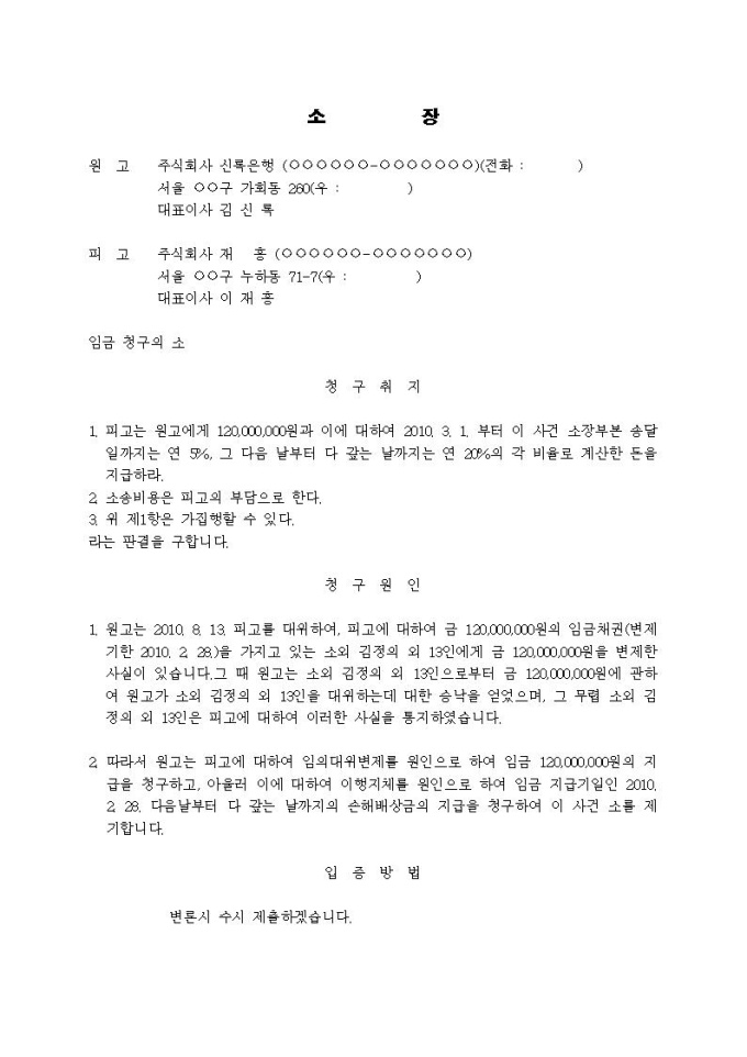 임금청구 소장(임의대위변제)입니다.