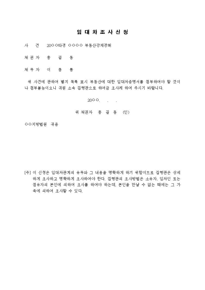 임대차조사 신청서입니다.