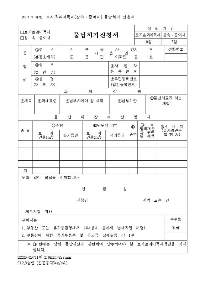물납 허가신청서