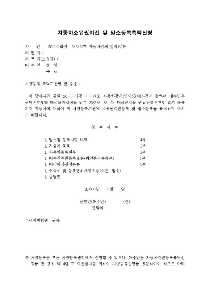 9,000원/월자동차소유권이전 및 말소등록촉탁신청서입니다.