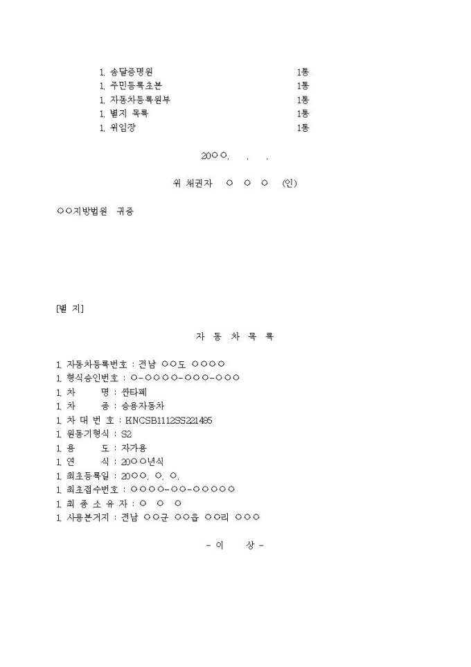 자동차인도명령신청서(2)입니다.