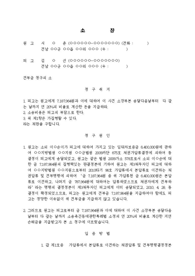 9,000원/월전부금 청구의 소입니다.